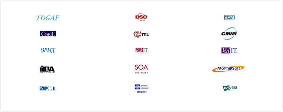 Es la integración de estándares y prácticas internacionales como TOGAF, BSC, BPM, BABoK, SOA, COBIT, ITIL, CMMI (ACQ, DEV, SVC), MoProSoft, PMBoK, OPM3, RISK – IT, VAL – IT, ISO – 27001 y PCI – DSS.